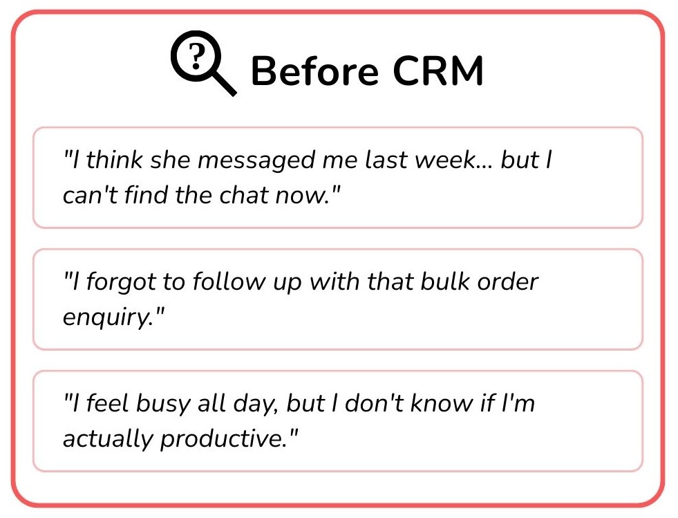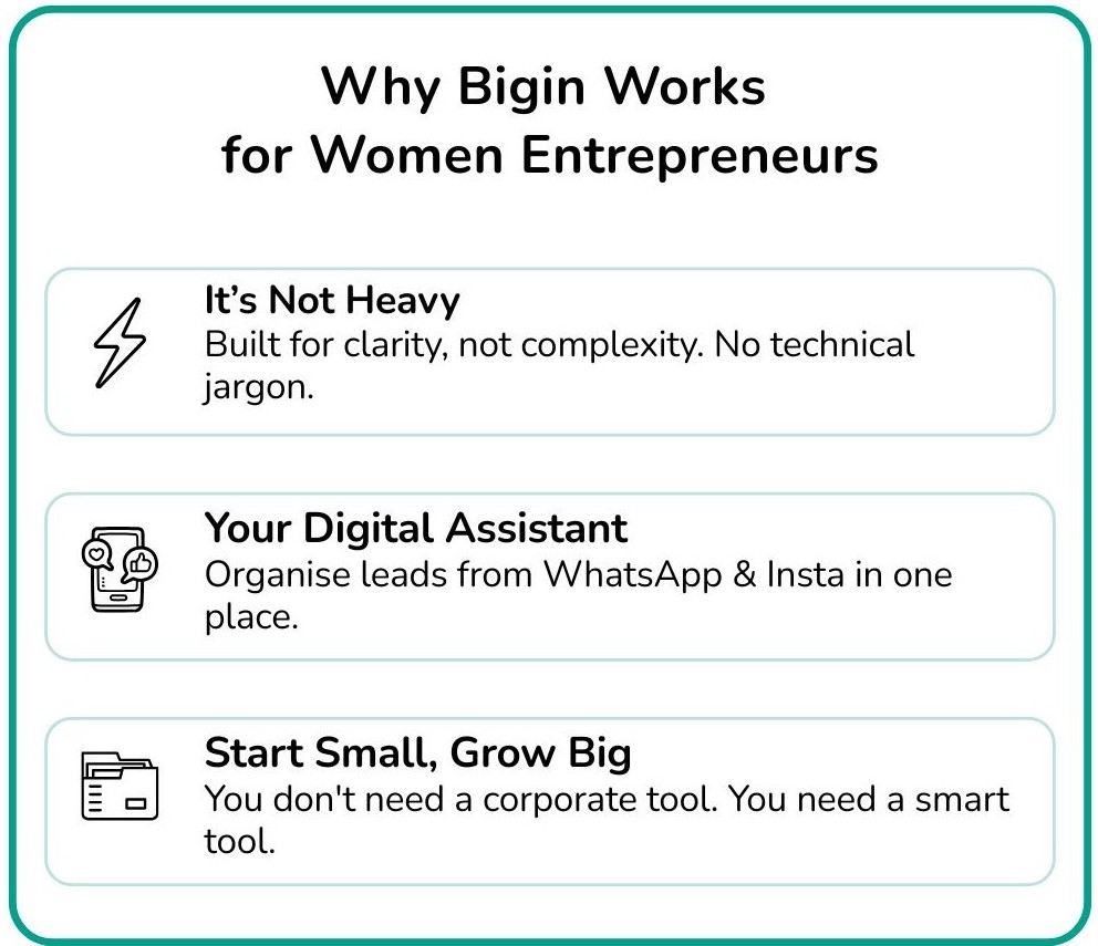Think of it as your digital business assistant - reminding you, organising for you, and giving you clarity. But here’s the catch: Most CRMs are built for big corporates.Bigin is built for us.